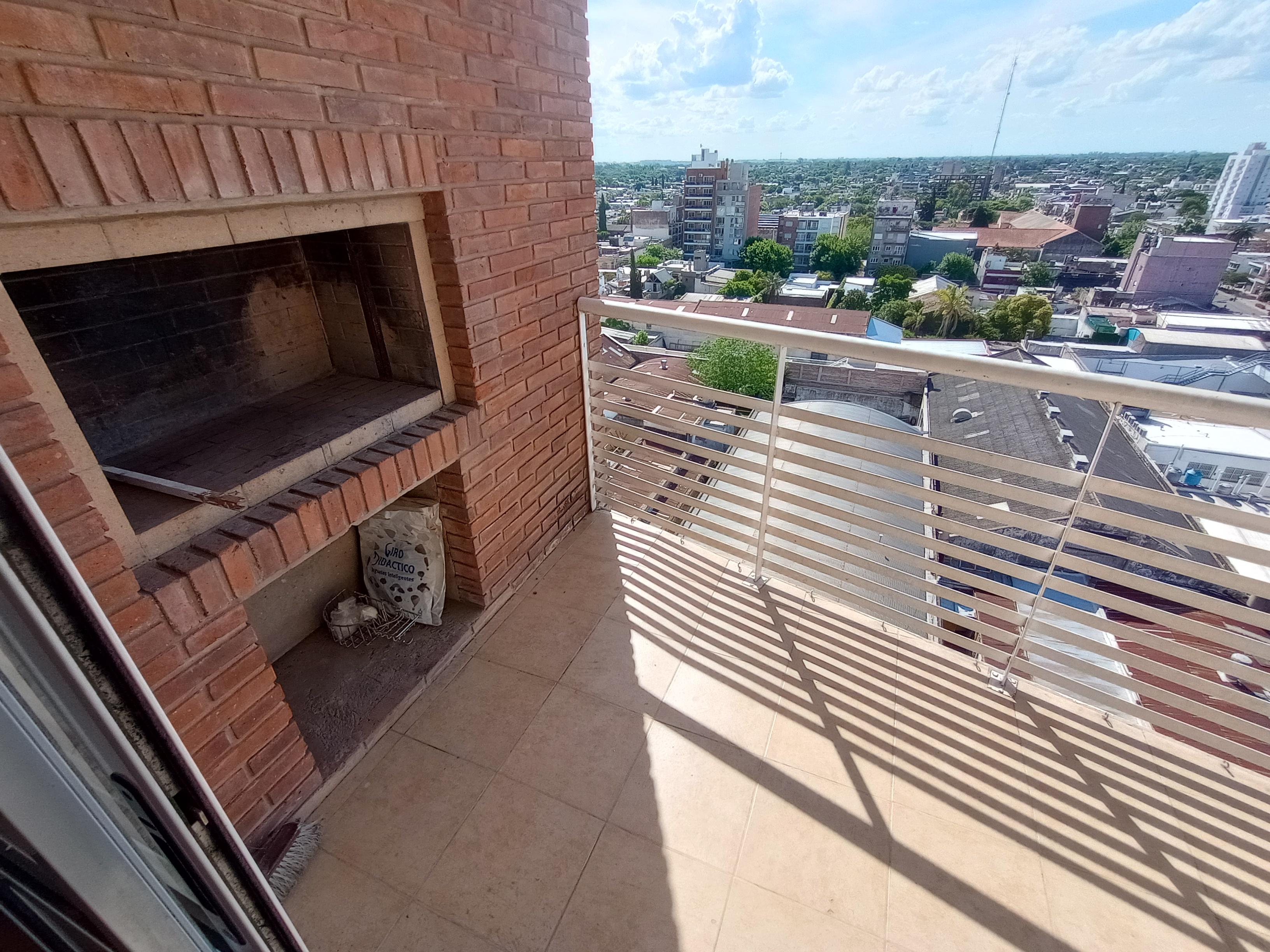 Departamento de dos dormitorios con placares y calefactor, living comedor, cocina comedor, baño, lavadero, balcón a la calle con parrillero. Con cochera.-