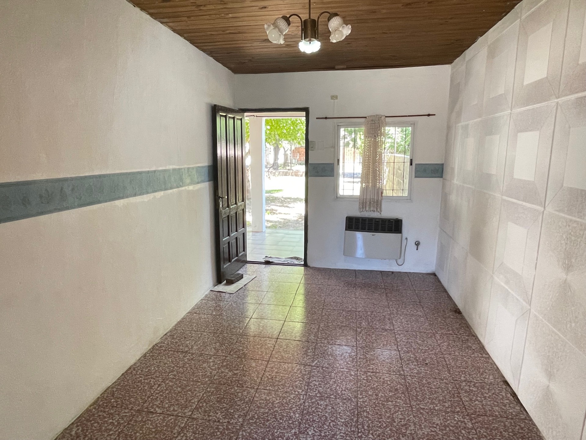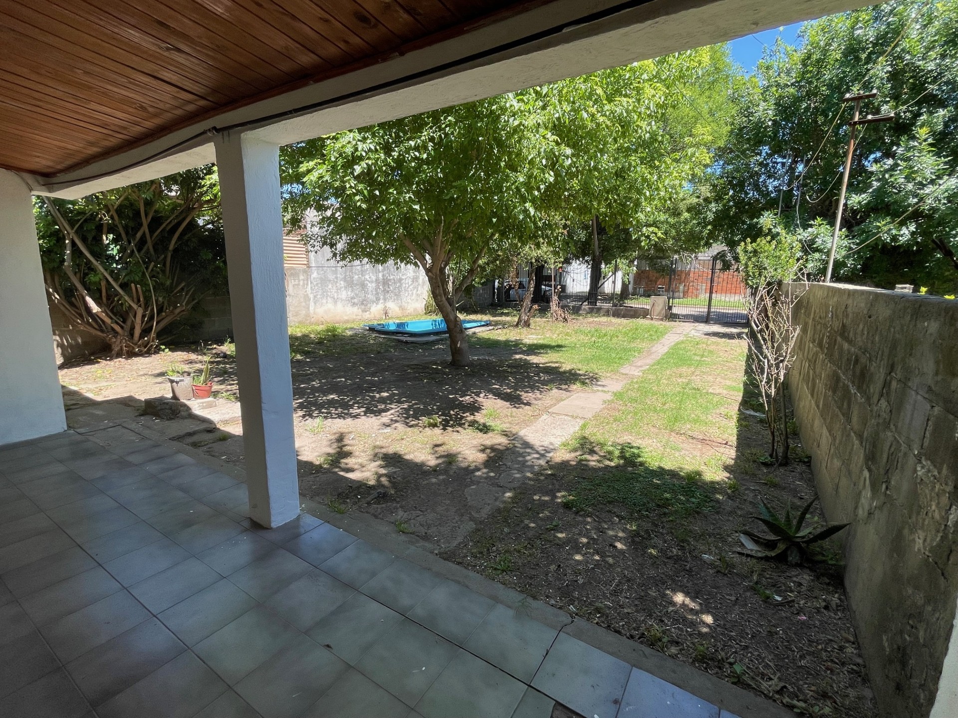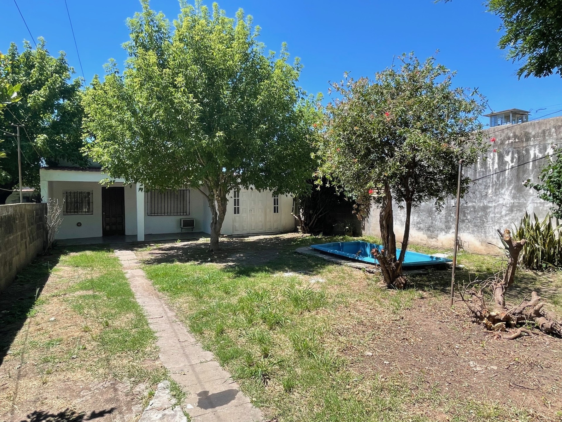 Casa de dos dormitorios, living, cocina comedor, baño, cochera, jardín al frente con pileta de fibra y patio posterior con parrillero. -