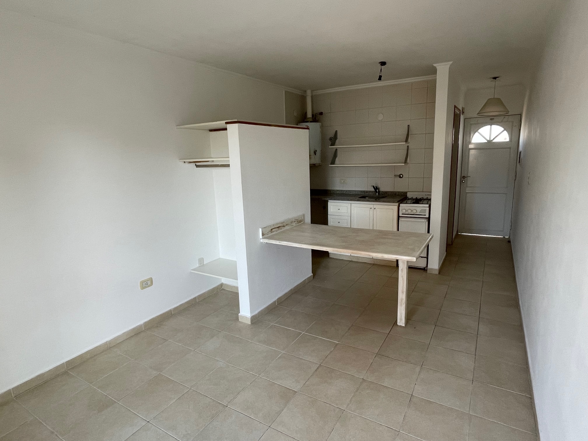 Ambiente único con kitchenette y mesa fija y baño completo.-