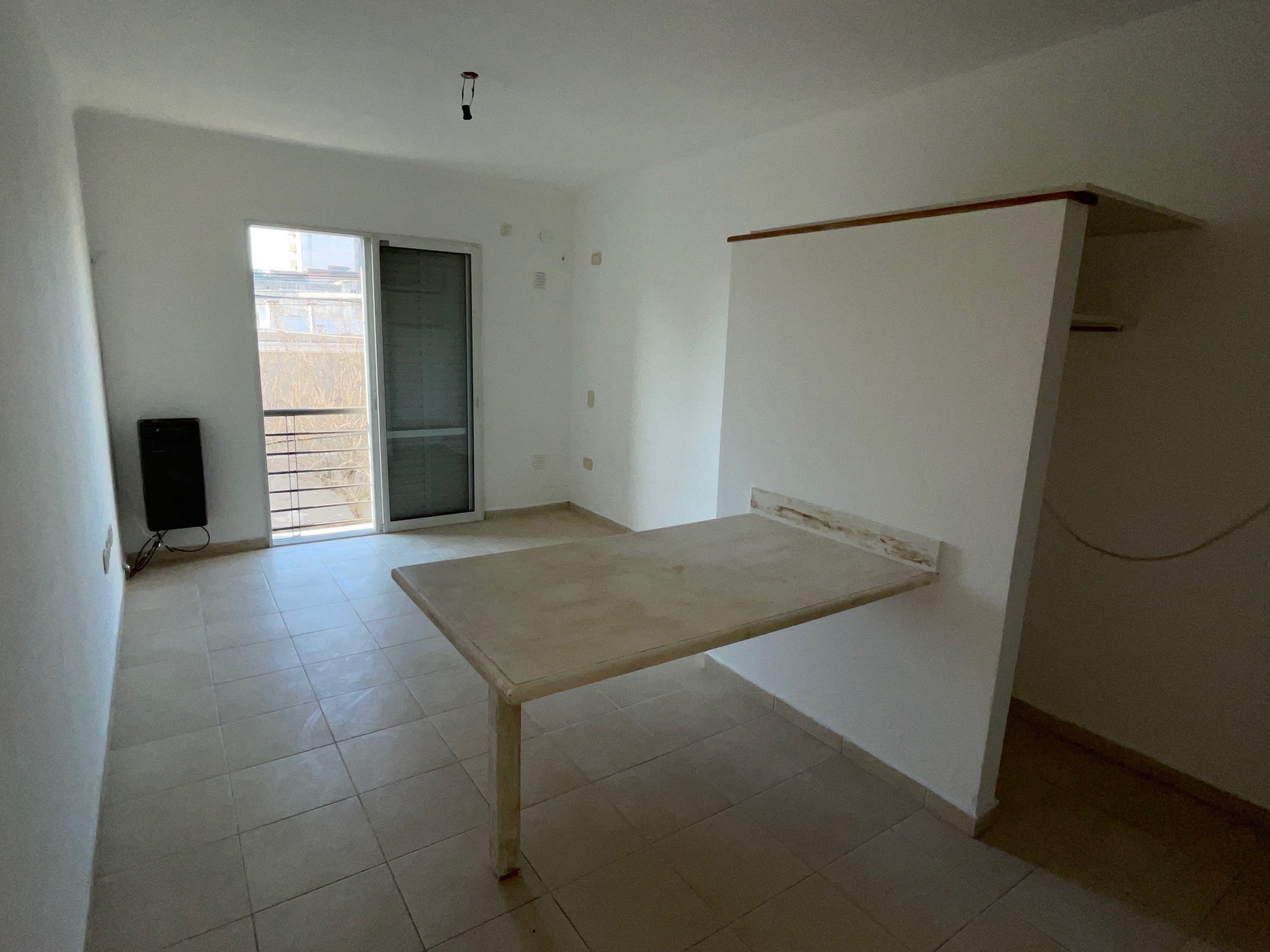 Ambiente único con kitchenette y mesa fija y baño completo.-