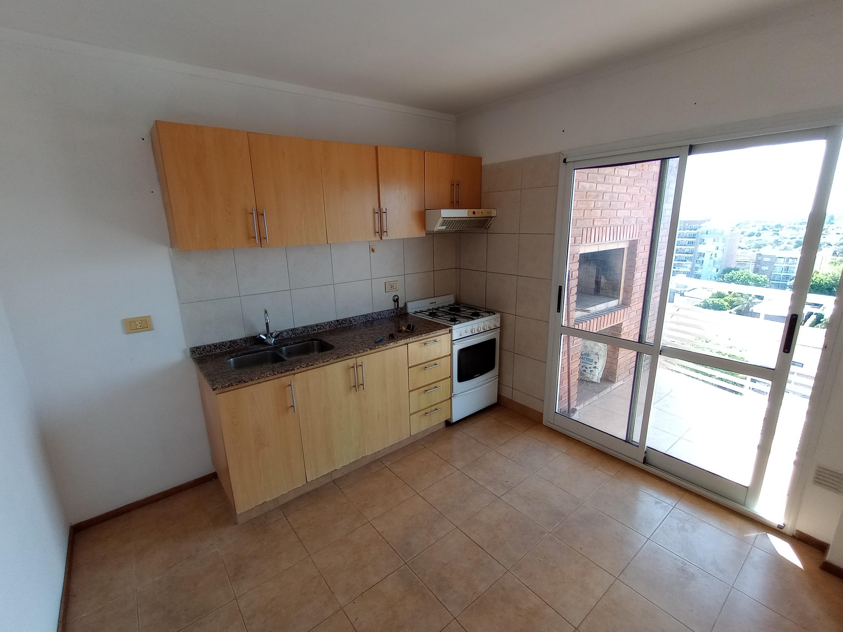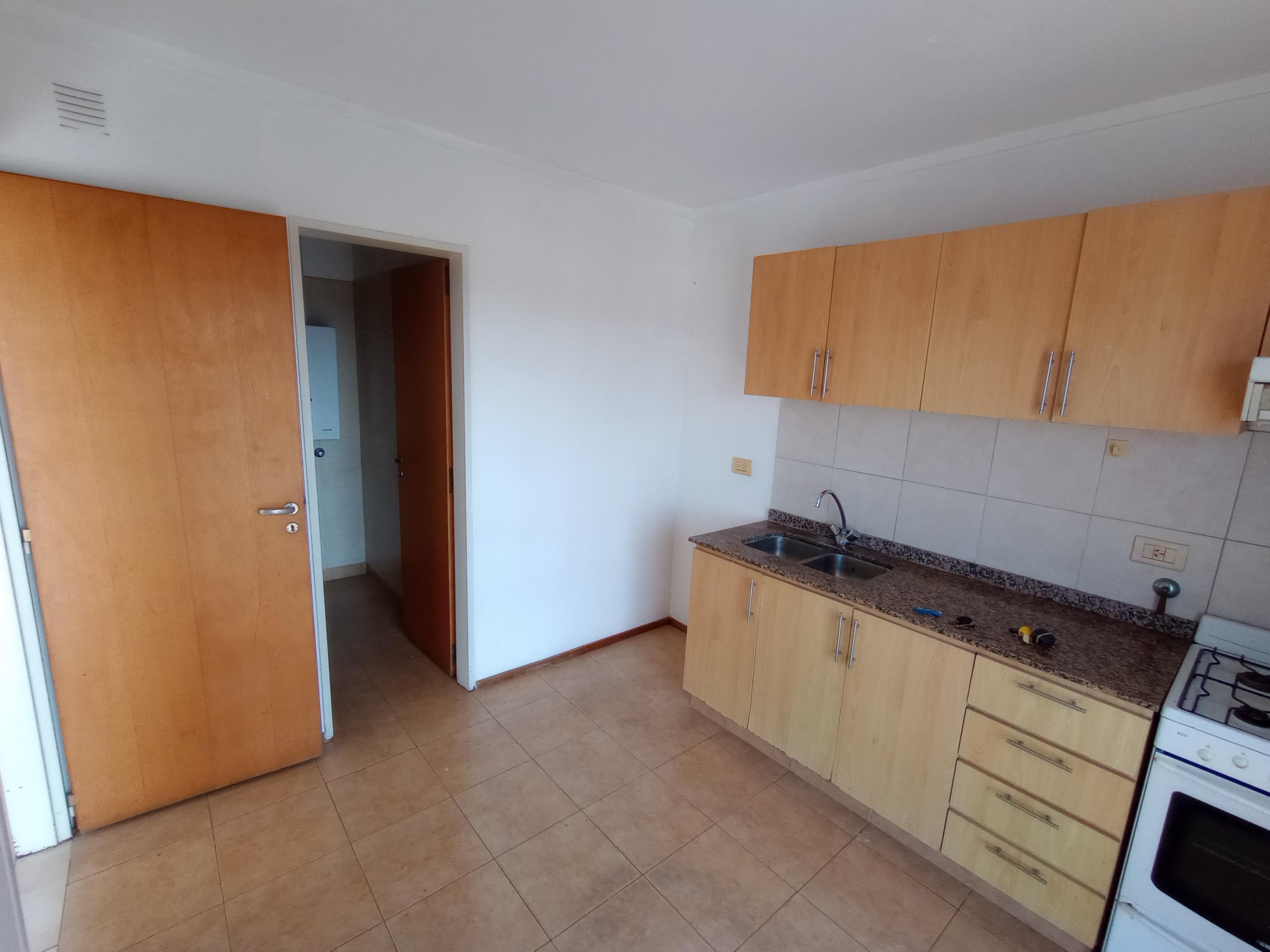 Departamento de dos dormitorios con placares y calefactor, living comedor, cocina comedor, baño, lavadero, balcón a la calle con parrillero. Con cochera.-