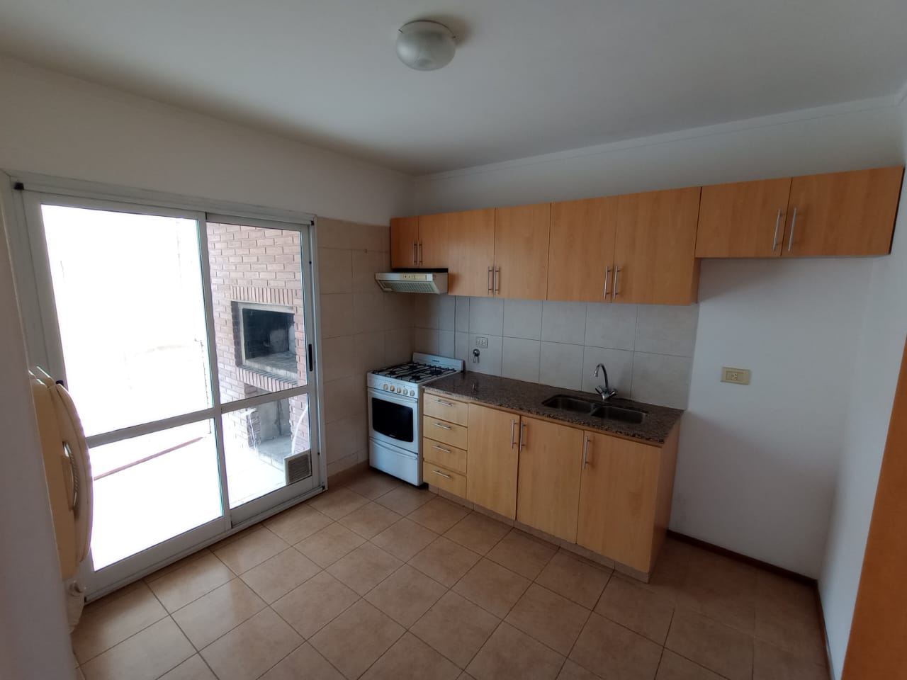 Departamento de 2 dormitorios con placares y calefactores, living comedor, cocina comedor, lavadero, baño, balcón con parrillero. Con cochera.-