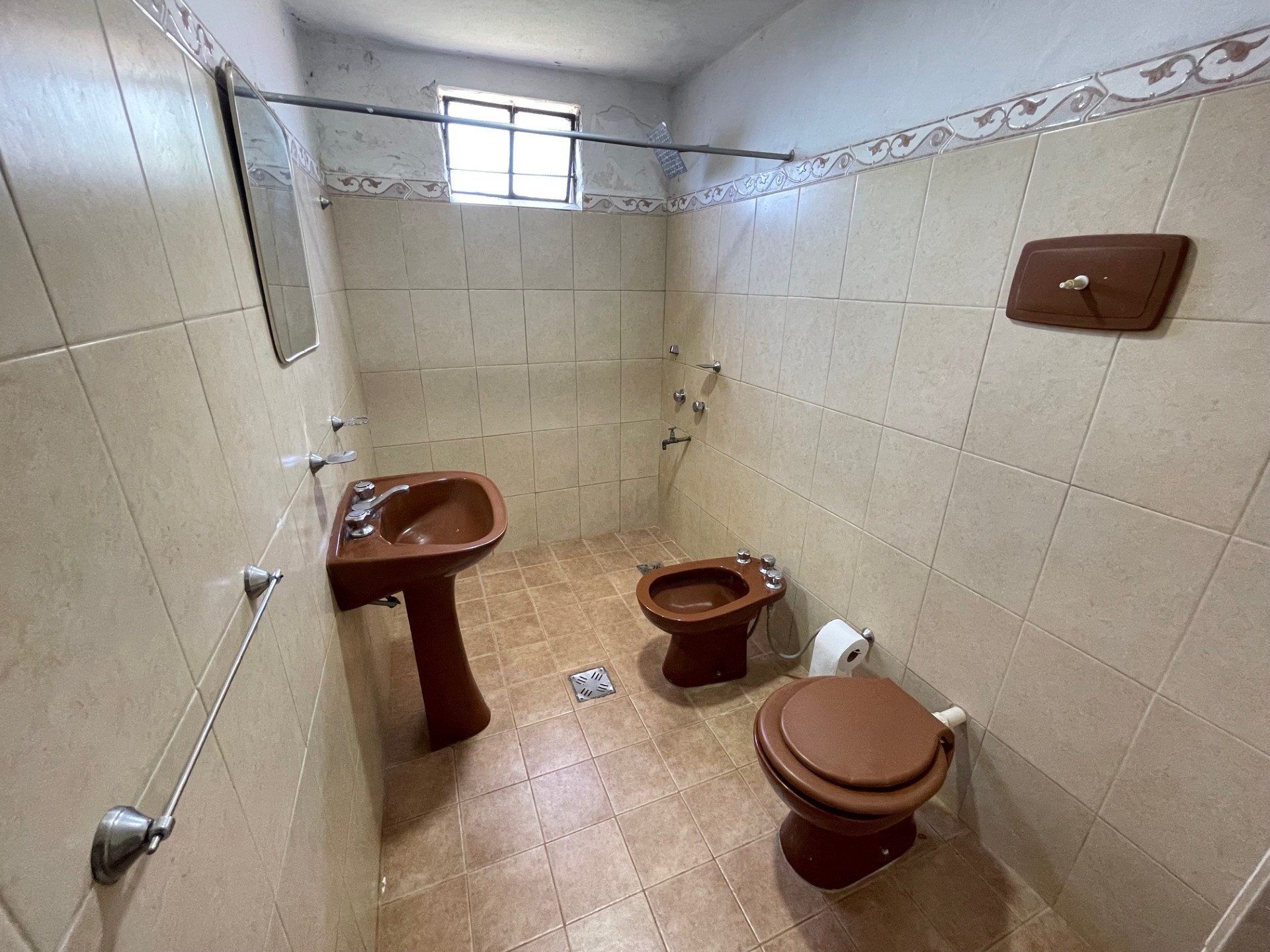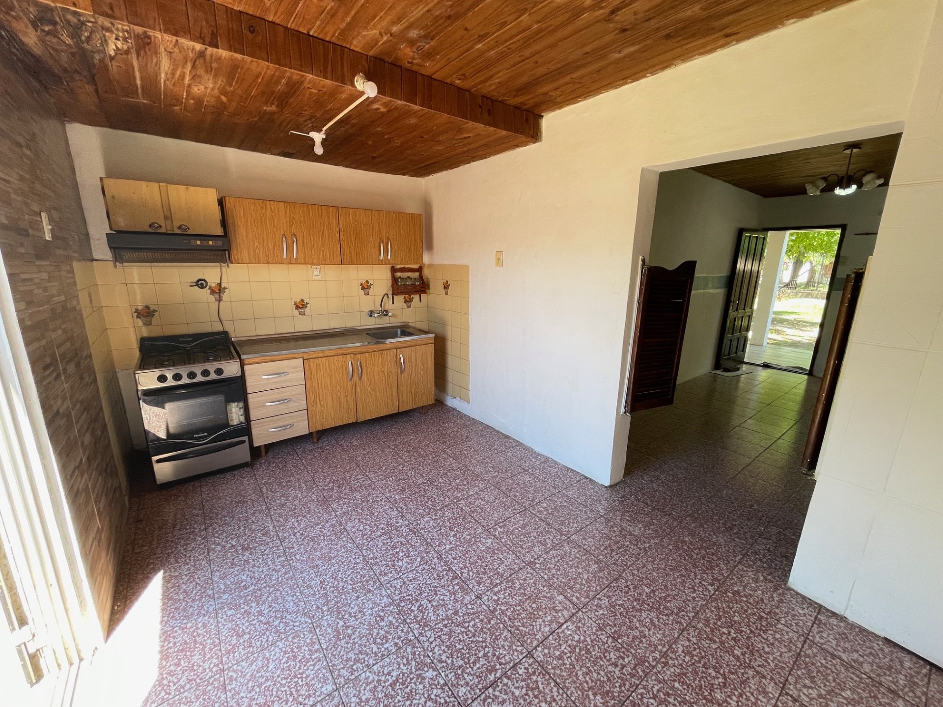 Casa de dos dormitorios, living, cocina comedor, baño, cochera, jardín al frente con pileta de fibra y patio posterior con parrillero. -