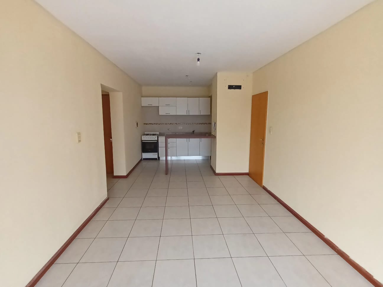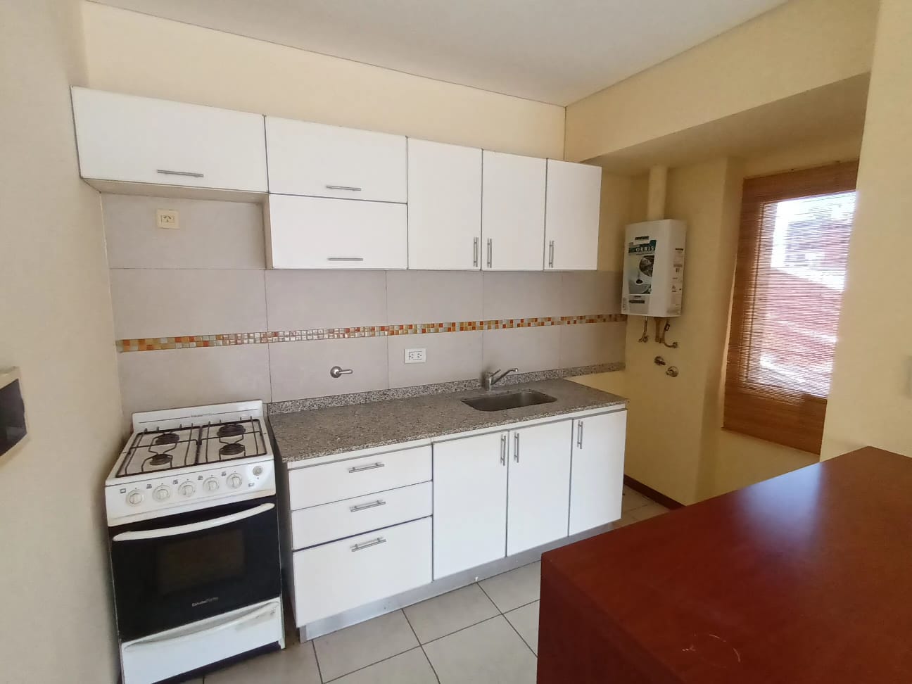 Departamento de un dormitorio con placard, amplio living comedor, cocina con barra desayunadora, baño y amplio balcón al contra frente.-